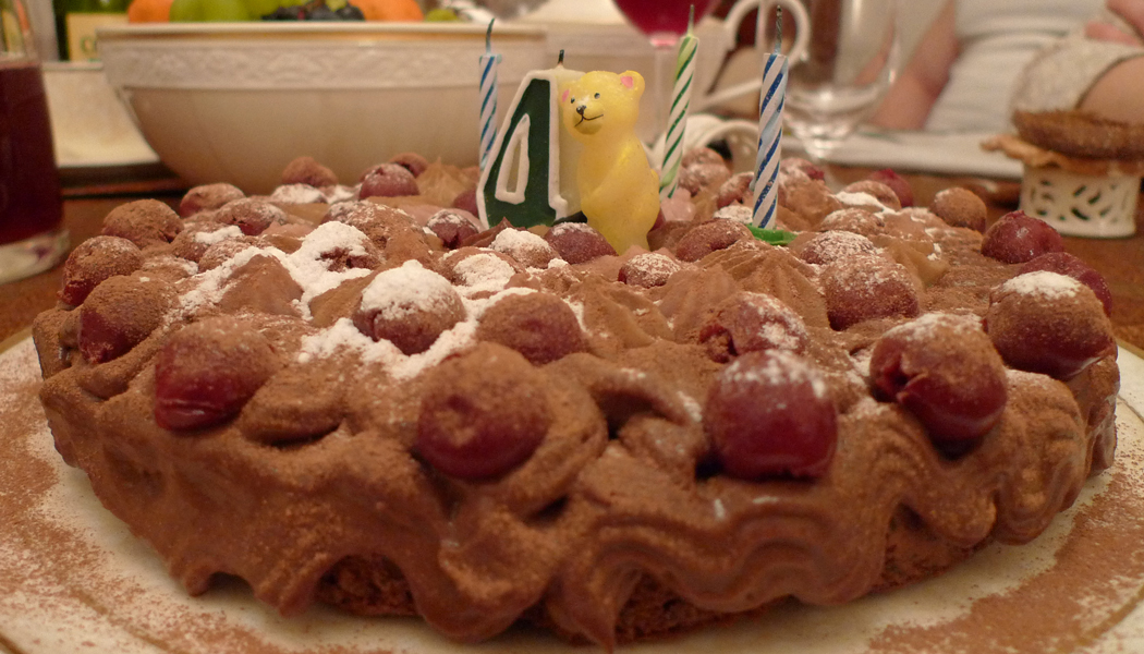 Шоколадно-ореховый торт, украшенный вишнями - для Коленьки. 8 февраля 2009 г.