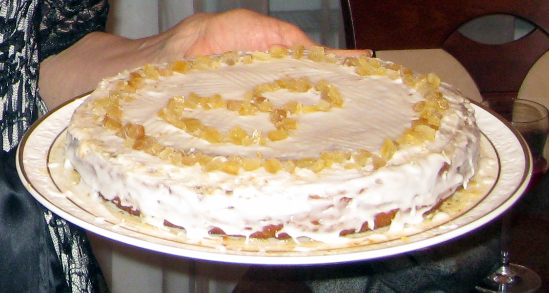 Лимонный пирог, украшенный лимонными же глазурью и цукатами. 8 марта 2009 г.