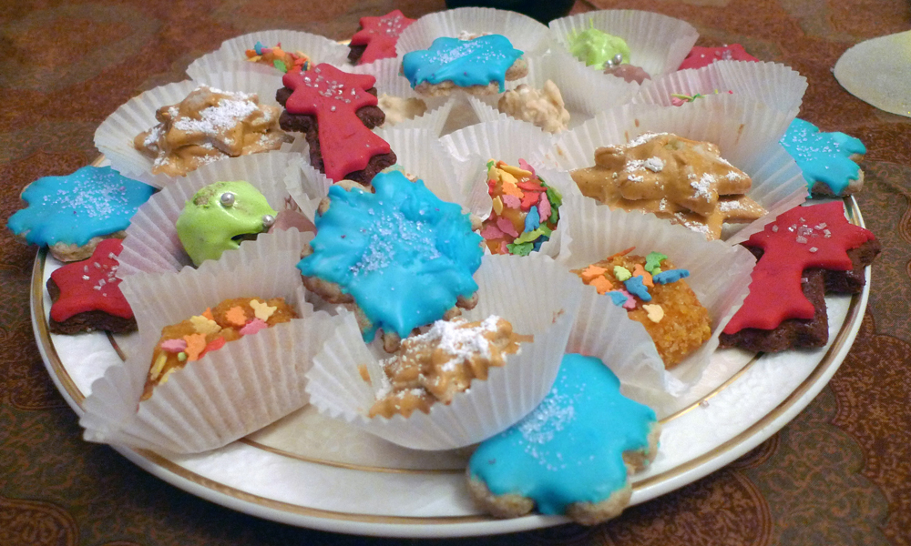 Для разнообразия: не новогодний торт, а пестрое печенное песочное ассорти, украшенное марципаном (2012)