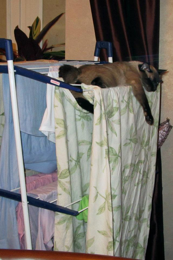 Сёма отдыхает на сушилке с бельем. У нас дома, 19 ноября 2011 г.