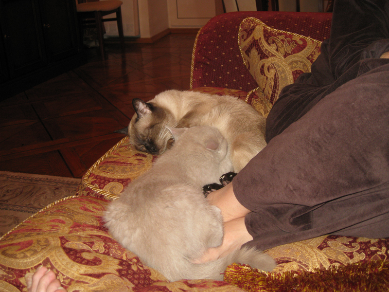 Живые тапочки. Я, Филя и Калли у нас на Чистых Прудах. 30 сентября 2008 г.