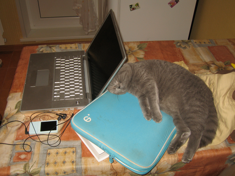 Бася тоже любит компьютеры - о них греться хорошо. Королев, 10 октября 2008 г.