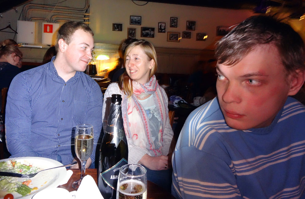 Саша Катин и Юрины дети Нина и Саша в клубе "Высоцкий" на моем выступлении. 22 марта 2015 г.