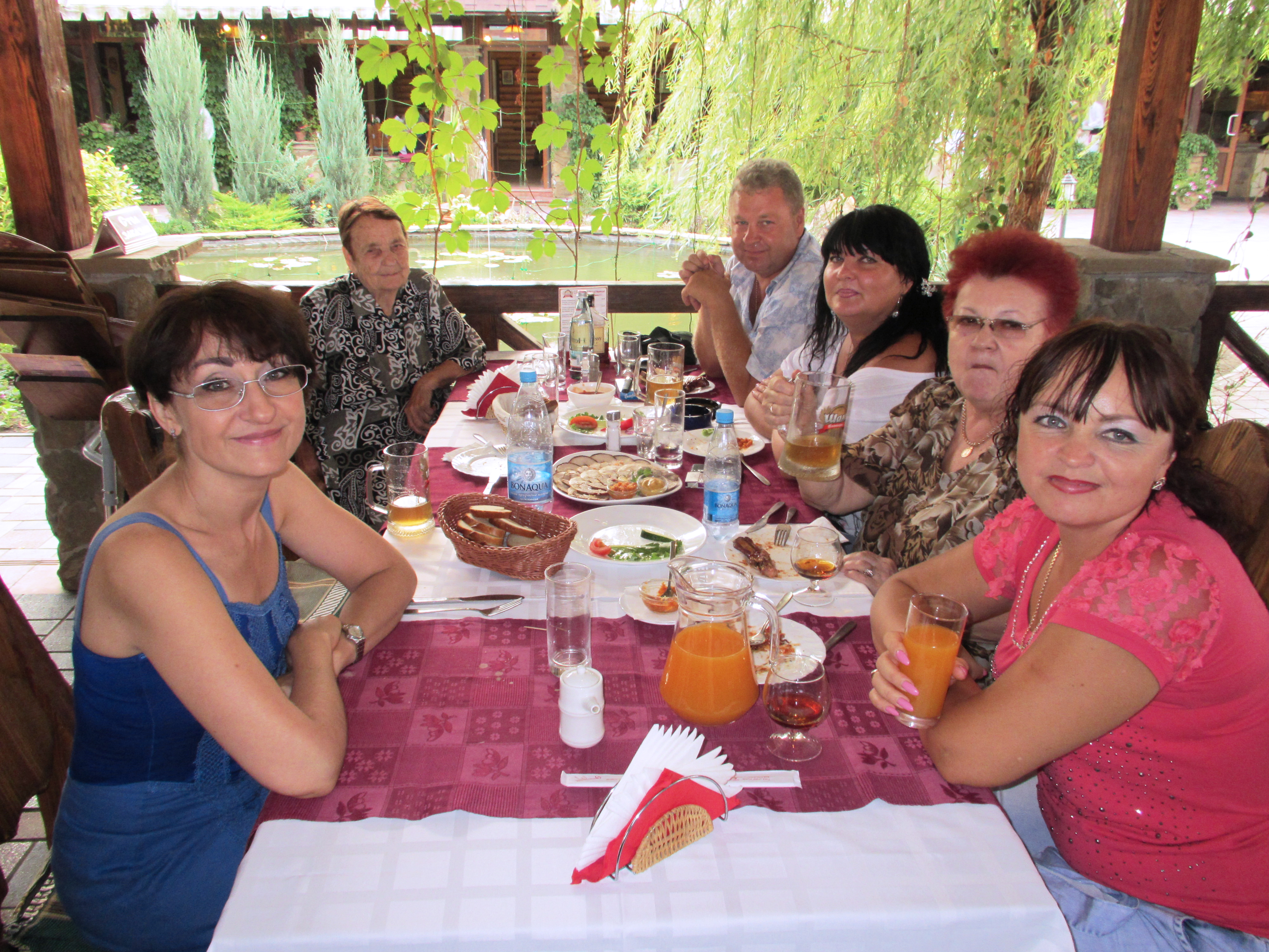Честная компания в ресторане "Шале": я, мама, Володя, Тома, Люда и Оля Катины. Северодонецк, 9 августа 2012 г.