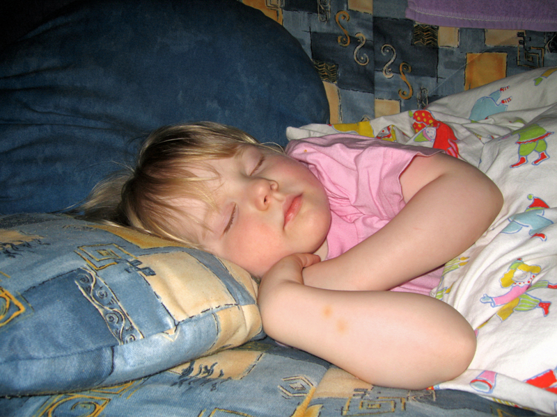 Шурино редкое счастье: неугомонная Тася уснула сном праведника. 31 декабря 2005 г.