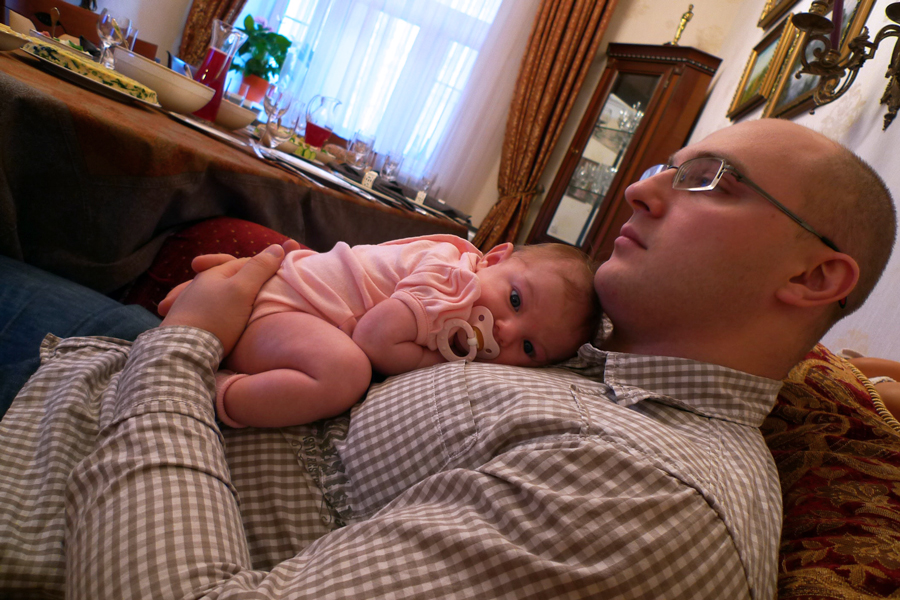 Хрупкая нежность под защитой могучей силы. Мой младший сын Петя с дочкой Миленой. 1 ноября 2009 г.