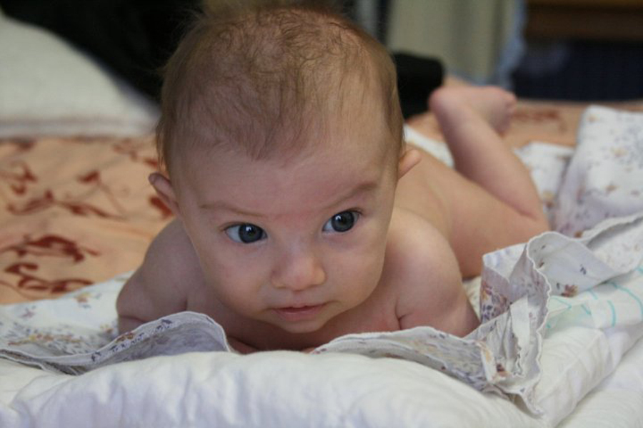 Милешка в свой месячишко уже кое-что умеет сама. 2 ноября 2009 г.