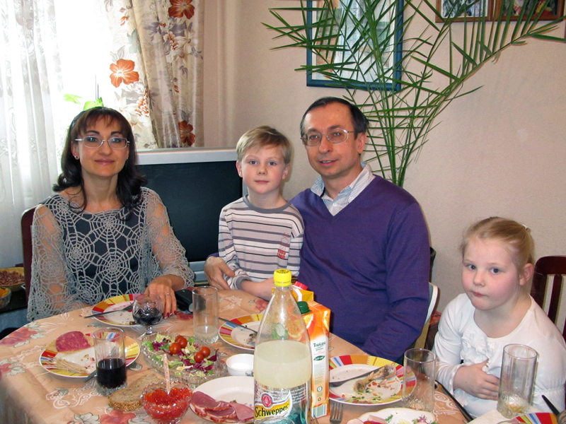 Мы со старшими внучатами Тасей и Колей поздравляем моего папу с 73-летием. Чулково, 19 марта 2011 г.