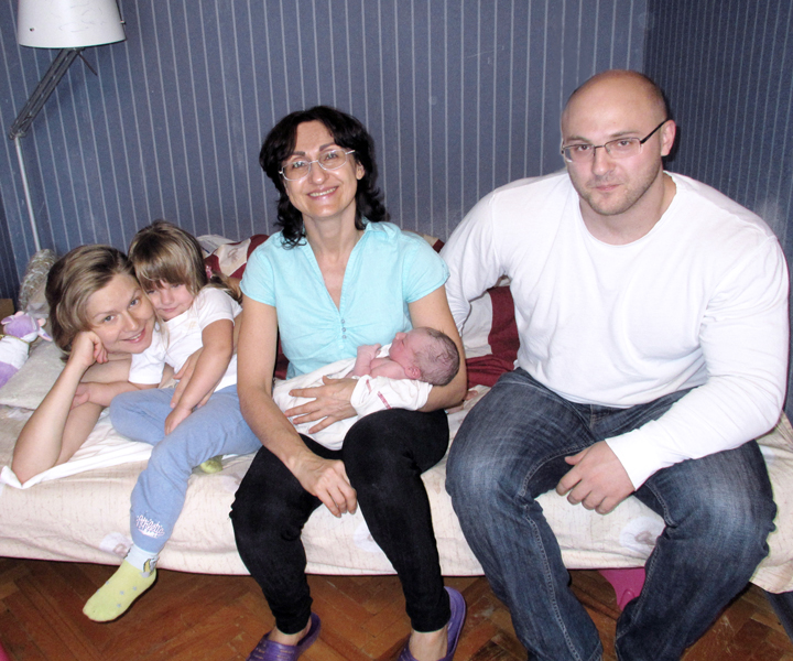 Счастливые родственники: папа Петя, мама Гала, сестренка Милена и бабушка Таня с малышом Павлушей. Москва, 24 августа 2012 г.
