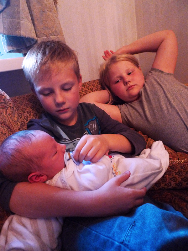 Старшенькие Тася и Коля с самым маленьким - двоюродным братишкой Патей. У нас дома 1 сентября 2012 г.