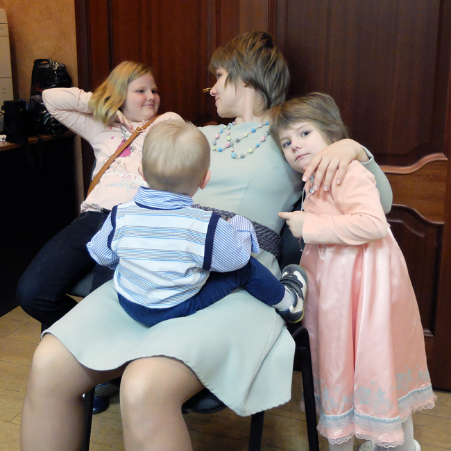 Галя с кучей карапузов на дне рождения "ноябрят". Офис ИРИО, 24 ноября 2013 г.