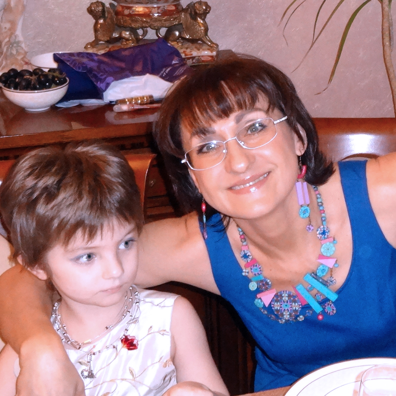 Мы с Миленкой в макияже и бусах по поводу чествования именинников Таси и Коли. 23 февраля 2014 г.