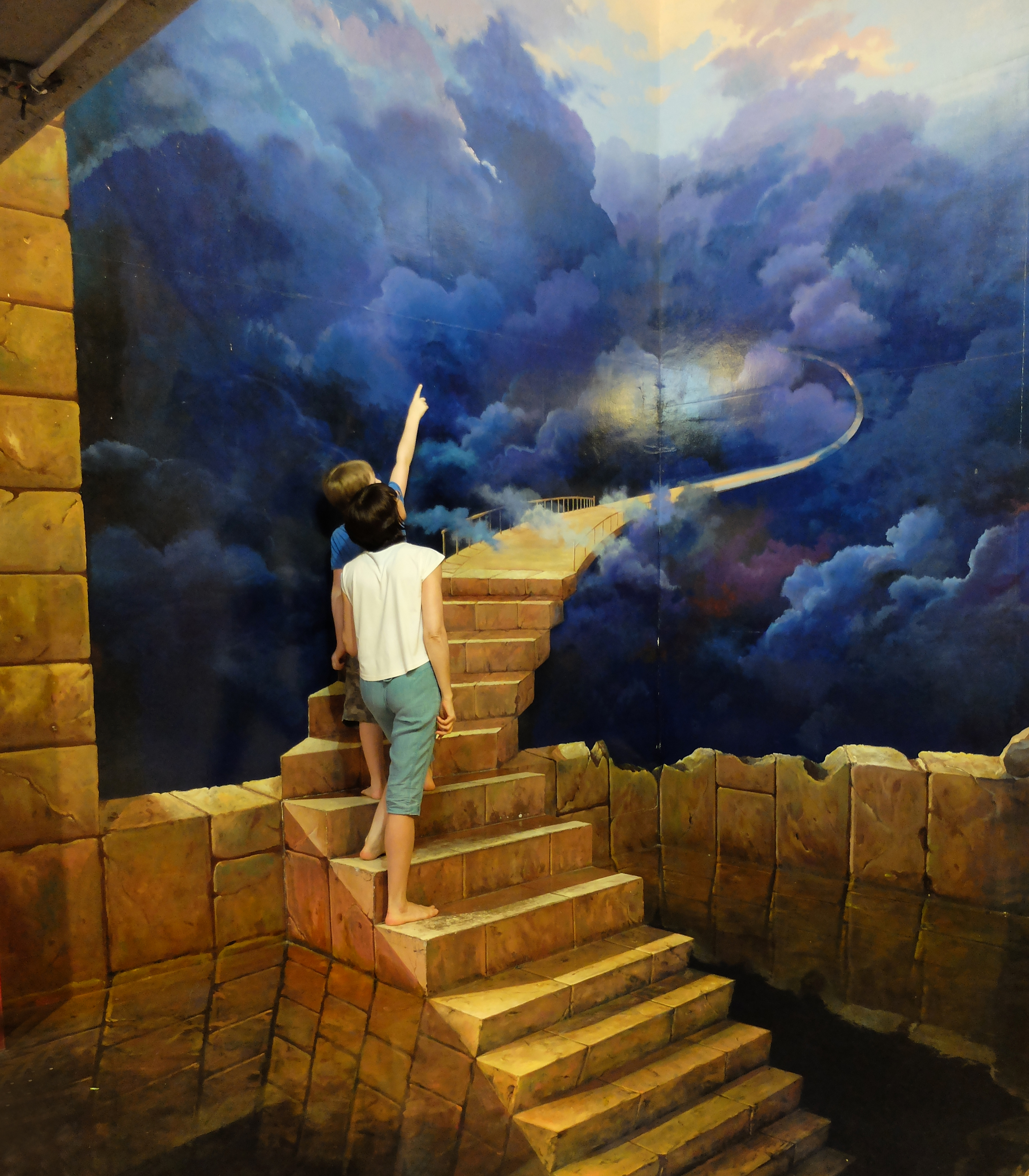 С Колей вверх по лестнице, ведущей в небо. В музее "Art in Paradise" в Паттайе, 29 марта 2014 г.