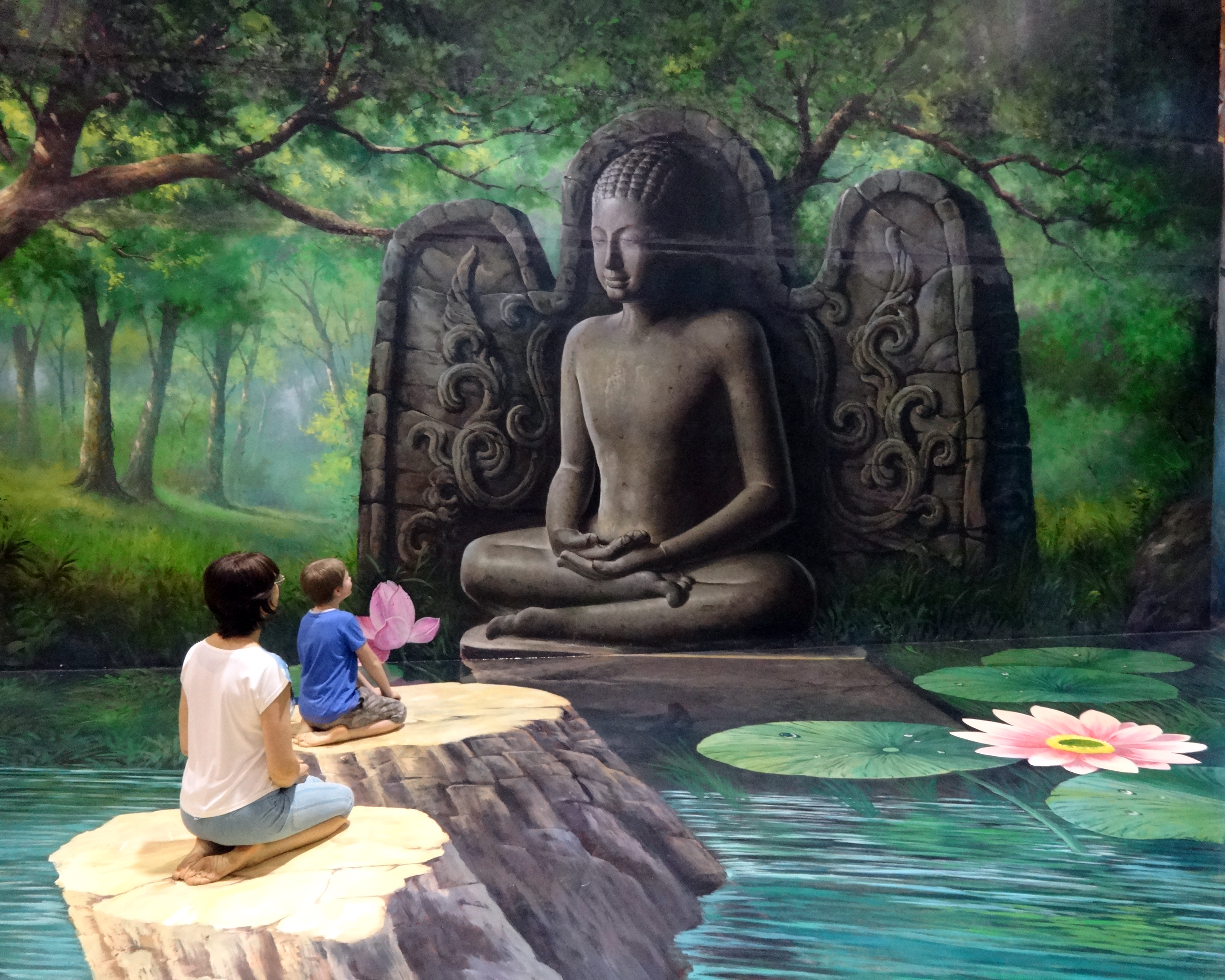 Бабушка, внук и Будда. В музее иллюзий "Art in Paradise" в Паттайе, 29 марта 2014 г.