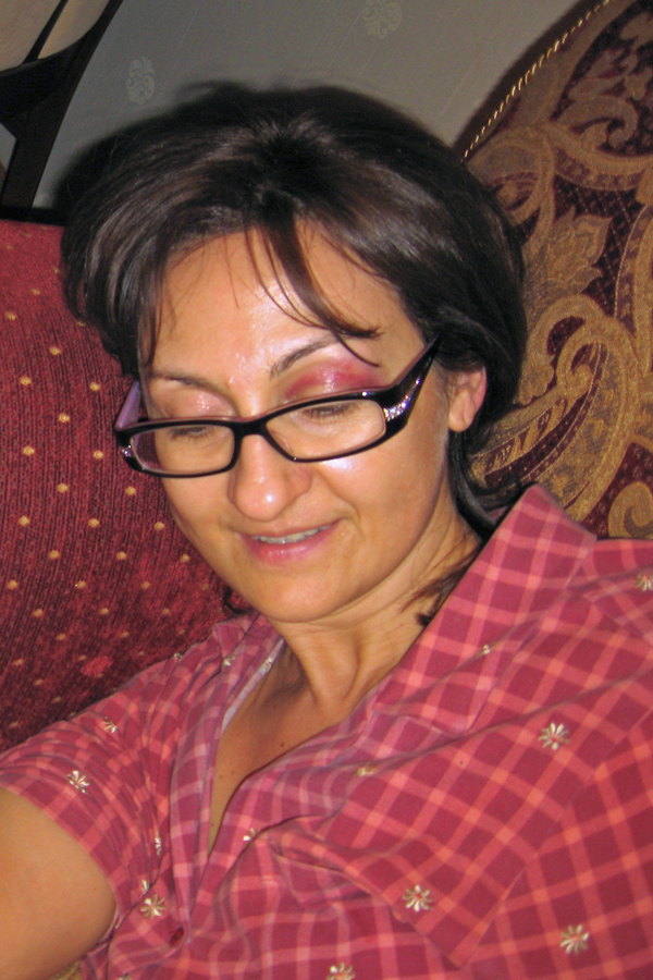 Новогодний фингал от Таси. Вот так мы с ней поплясали у ёлочки. 1 января 2008 г.