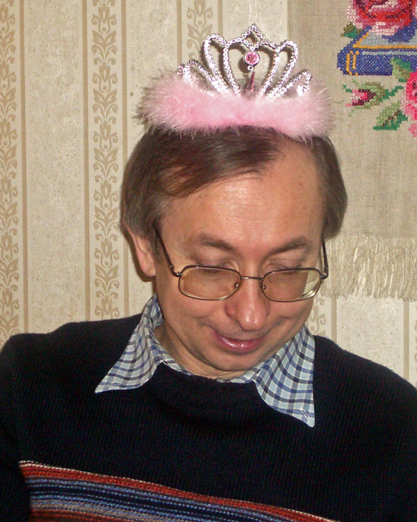 Юра изображает принцессу, играя с Тасей. В гостях у моего папы. Чулково, 3 января 2008 г.