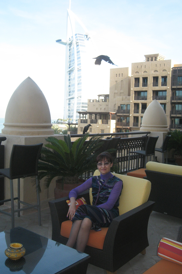 На веранде отеля Mina-a'Salam в Дубае. За моей спиной - знаменитый дубайский "Парус". 20 ноября 2009 г.